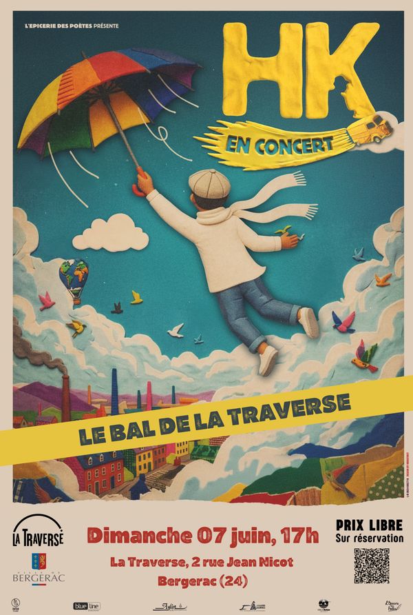 Pour fêter la sortie de leur nouvel album "Le Coeur au vent", retrouvez HK et ses ami-e-s musicien-nes à l'énergie communicative pour un bal à La Traverse, à Bergerac (24) le dimanche 07 juin 2026 à 17h ! **Un bal populaire du dimanche après-midi**, des textes et des mélodies contagieuses, une irrévérence joyeuse, des refrains qui nous ressemblent, des idées qui nous rassemblent, des mélodies de violons et d'accordéon qui nous embarquent sans plus attendre, une poésie à la fois combative et tendre, sur une musique toujours aussi entraînante ! **Adresse** : La Traverse, 2 rue Jean Nicot 24100 Bergerac Ouverture billetterie **15h**, Concert à **17h**, Fermeture à **21h**. **Réservations (prix libre)** : [https://www.helloasso.com/associations/association-l-epicerie-des-poetes/evenements/07-juin-2026-hk-en-concert-a-bergerac-24](https://www.helloasso.com/associations/association-l-epicerie-des-poetes/evenements/07-juin-2026-hk-en-concert-a-bergerac-24) _La participation à HelloAsso est ajoutée automatiquement mais n'est pas obligatoire : vous pouvez décocher la case avant de confirmer votre réservation._